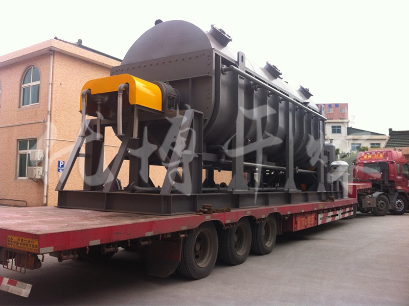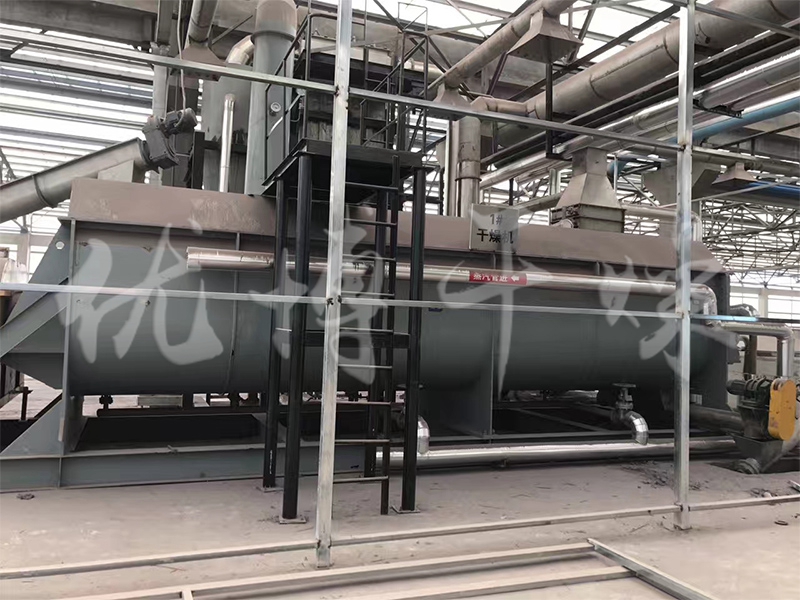 钢铁厂污泥可以一次性将80%含水量的物料烘干至成品。针对污泥烘干过程中易结团结块的特性,改变了一般单通道干燥机的料板结构形式,采用了组合式自清理装置,极大地扩展了单通道干燥机应用范围,不仅可以干燥各类污泥,还可以干燥各种高粘度物料。